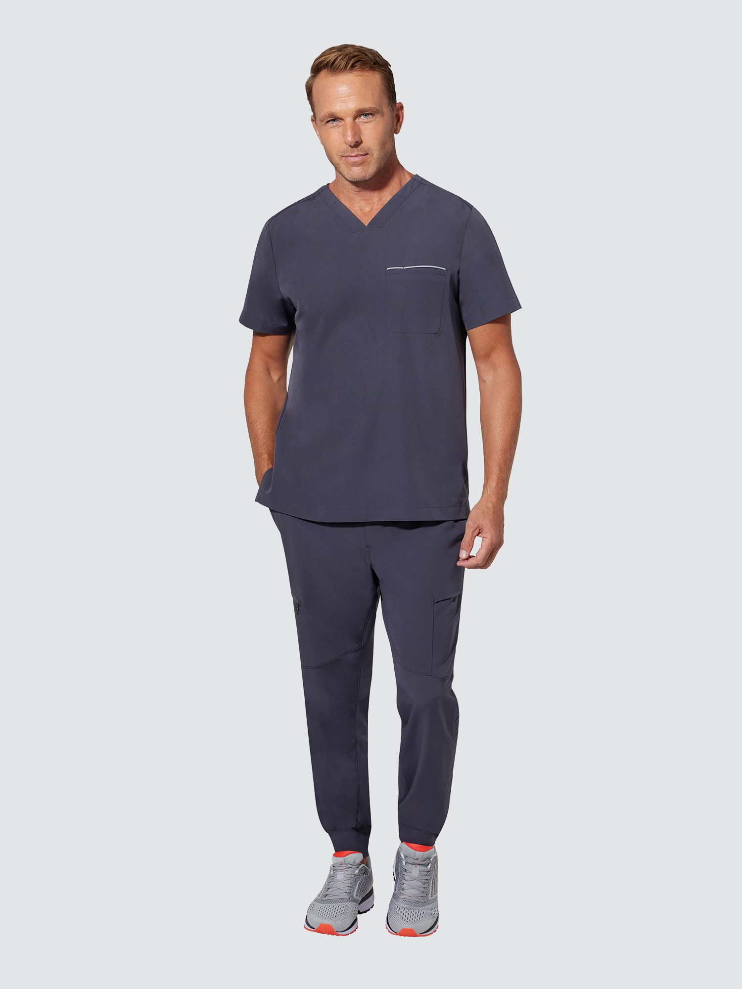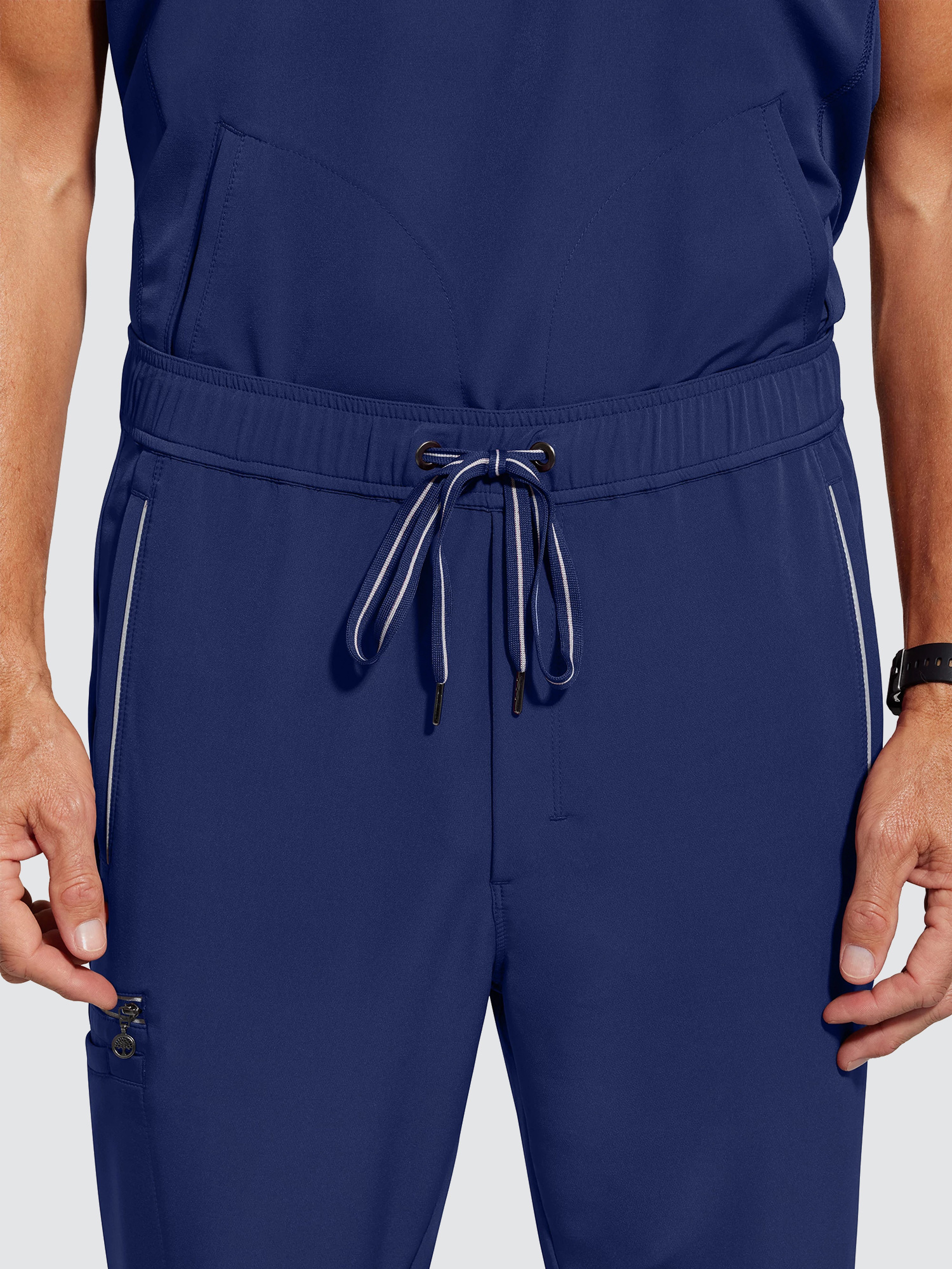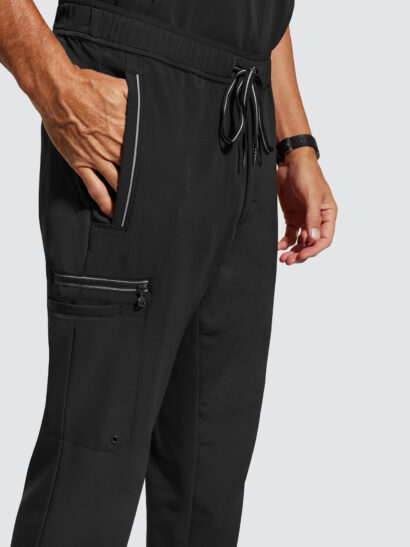 A one-pocket, mixed-media tops made from at least 8 recycled water bottles. It is as moveable, breathable and durable as the jerseys worn by your favorite sports teams, alonside full elastic drawstring waist trousers, providing a comfortable fit, like a best friend that never wears out.