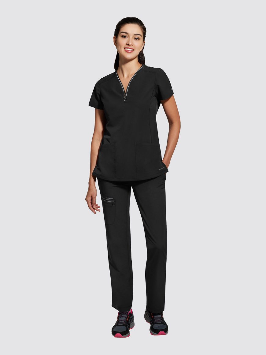 Make a statement with this versatile zip-neck top. The heavy stitching adds interest to the clean lines and tailored silhouette for a fresh take on your everyday uniform; alongside joggers designed to flatter with their straight leg opening, the pant is crafted from sustainable polyester with four-way stretch and an exclusive diamond weave for added comfort and durability.