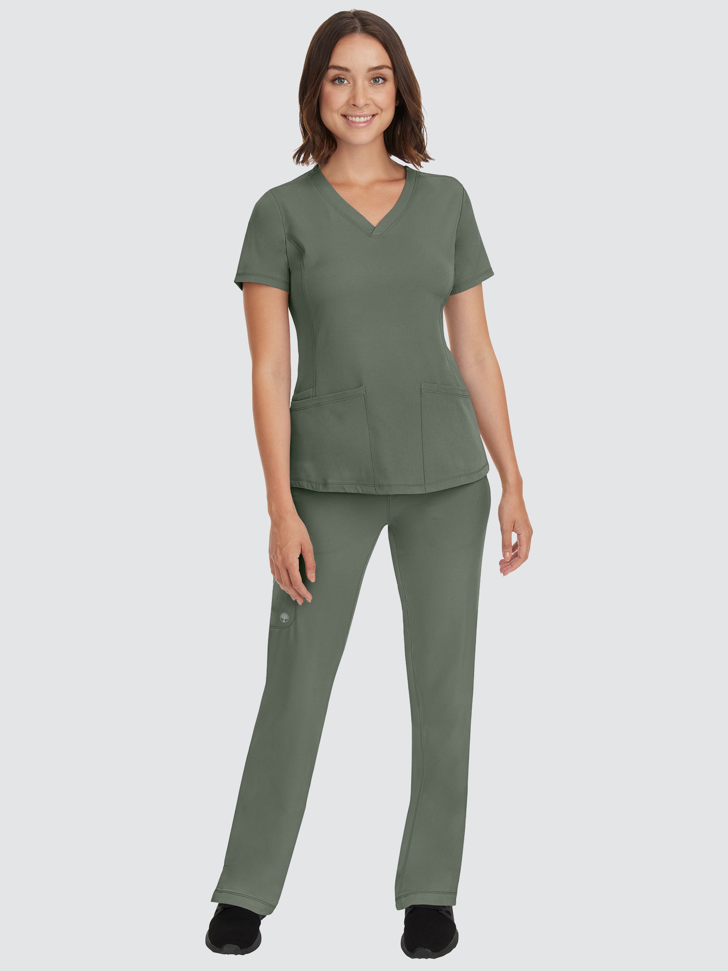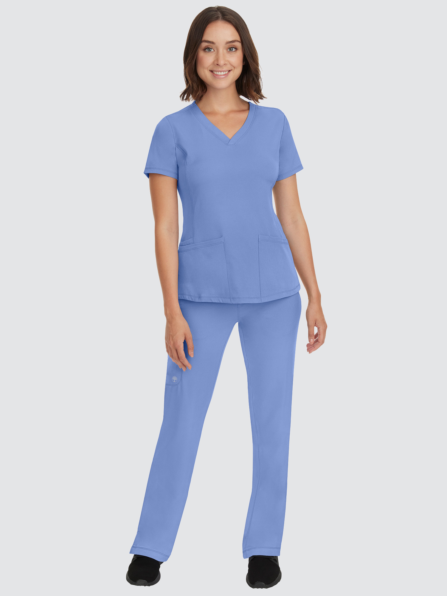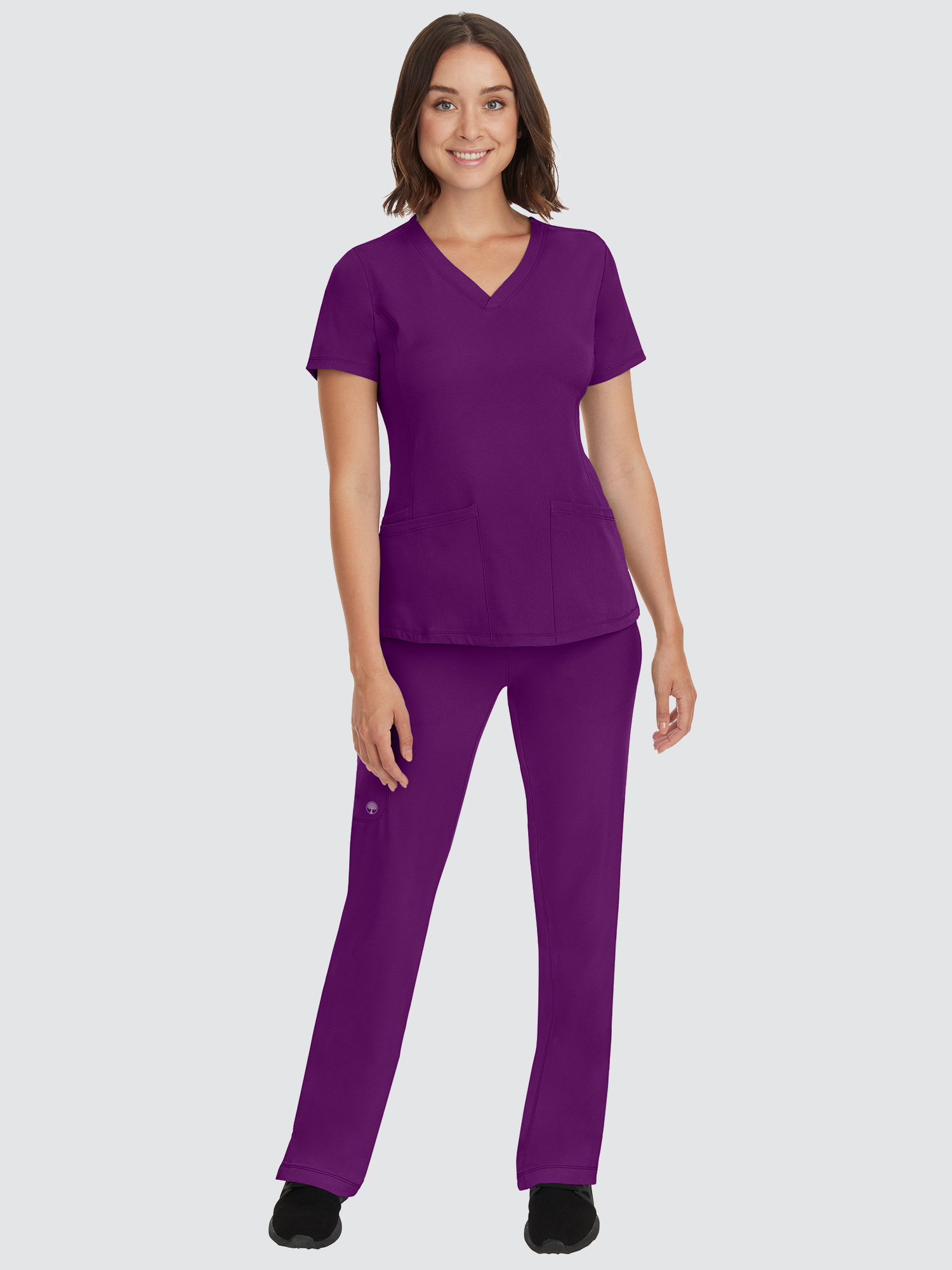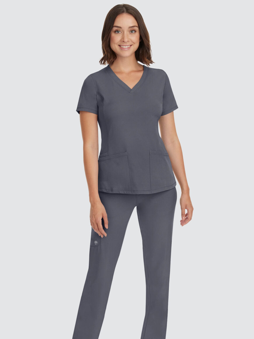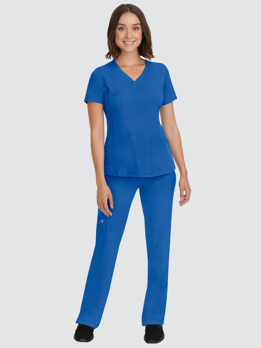 Featuring a V-neck design and modern fit, this top has a four-pocket layout plus princess seams to help define your shape, while the four-way stretch gives you more comfort than ever before. The stylish drawstring trousers will be your new go-to. With six pockets, a locker loop, and full elastic waistband, they’ve got everything you need and more.