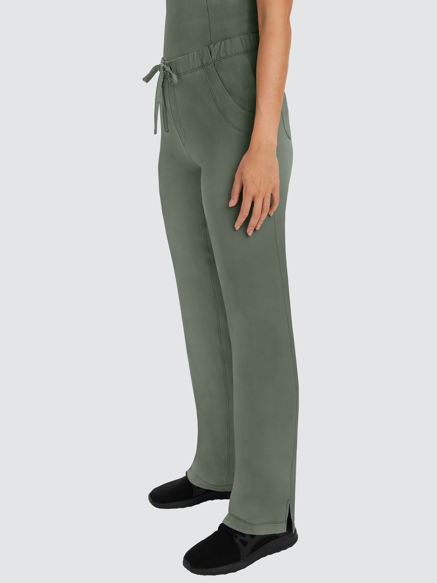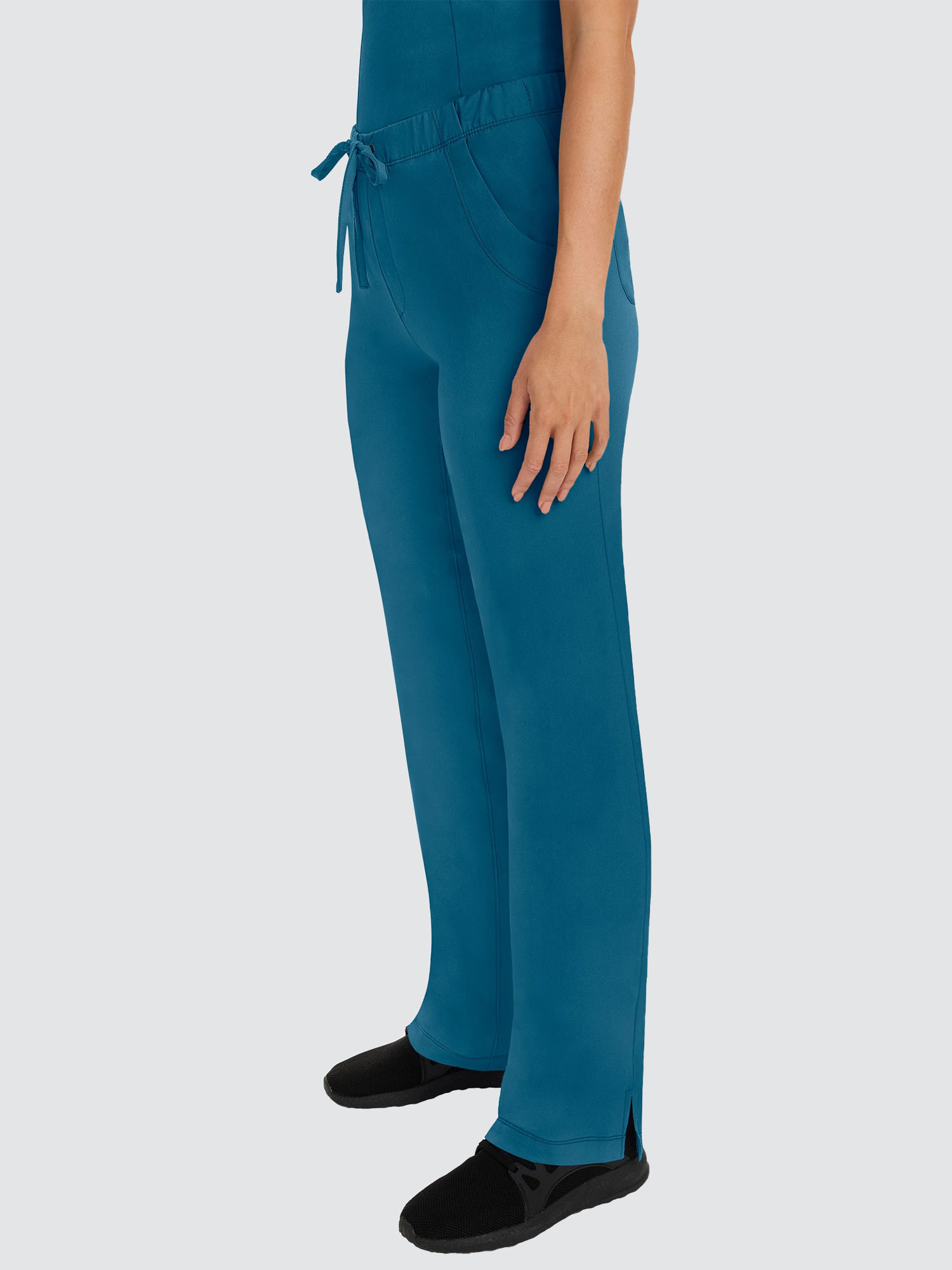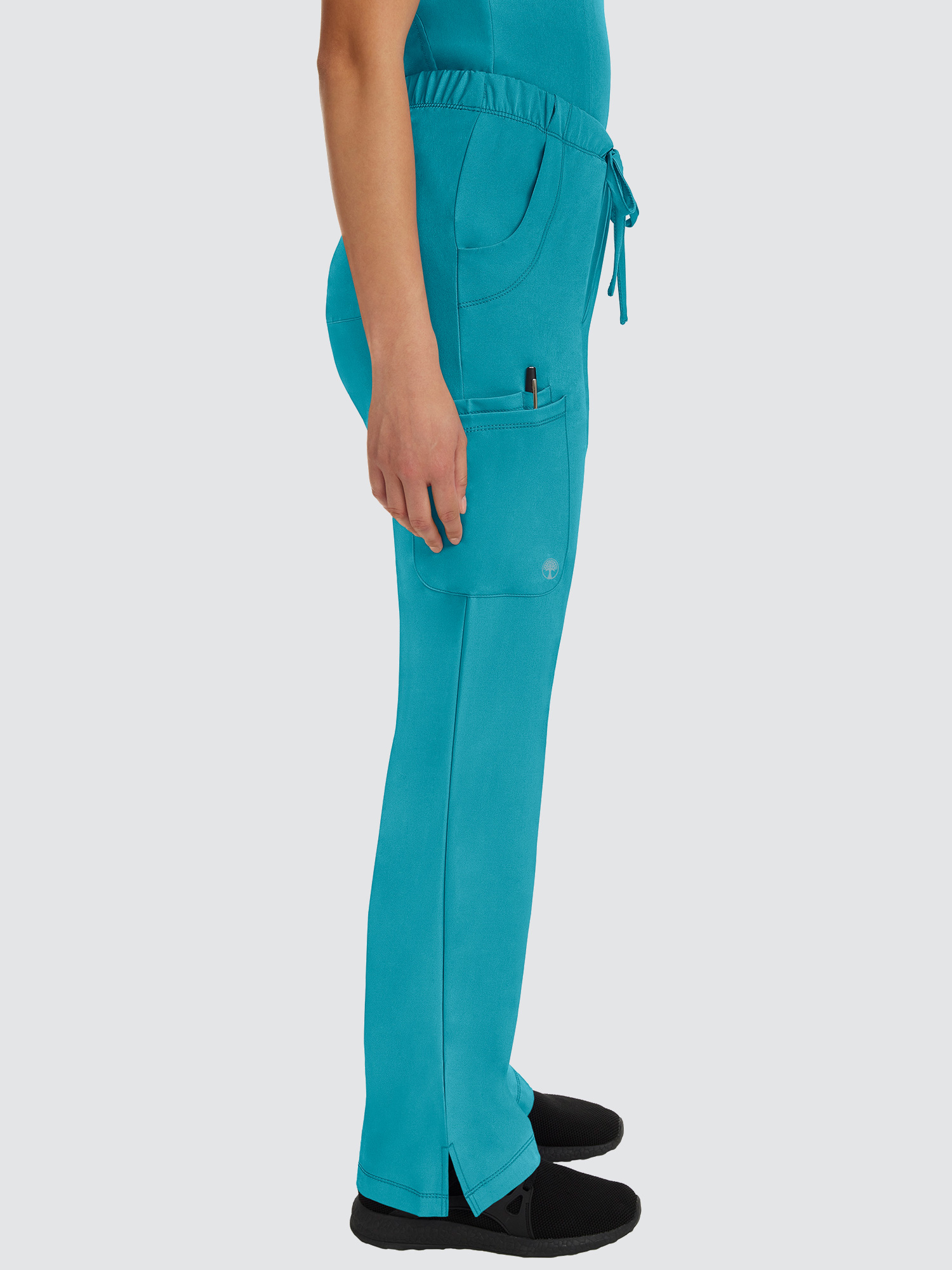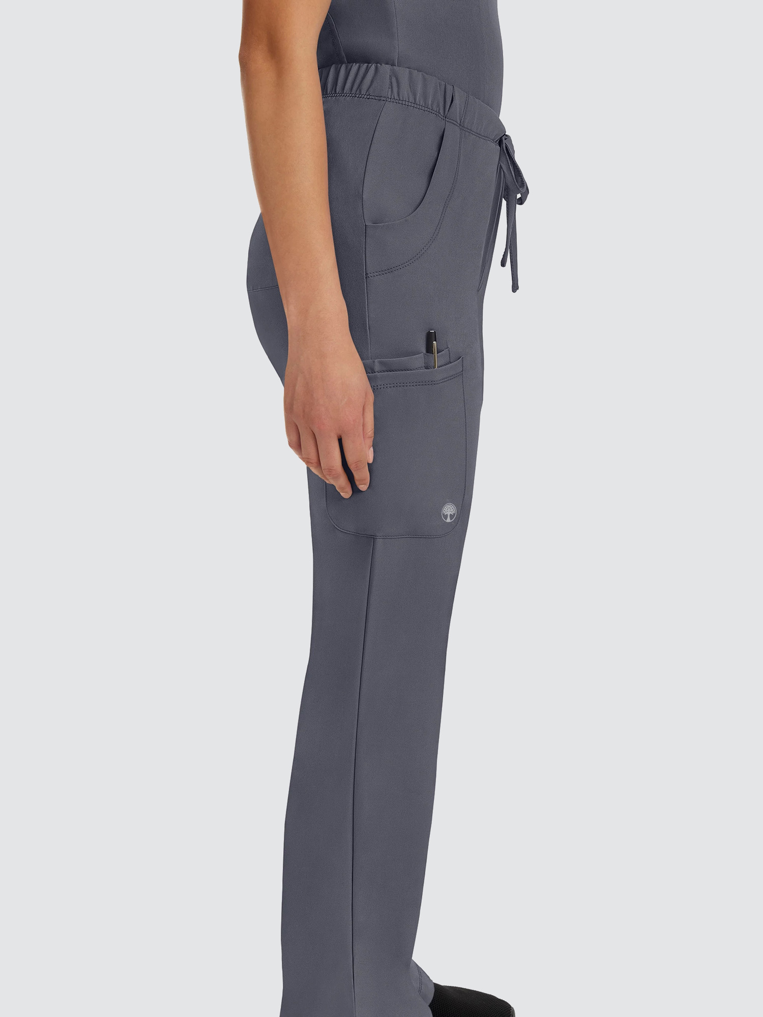 Featuring a V-neck design and modern fit, this top has a four-pocket layout plus princess seams to help define your shape, while the four-way stretch gives you more comfort than ever before. The stylish drawstring trousers will be your new go-to. With six pockets, a locker loop, and full elastic waistband, they’ve got everything you need and more.