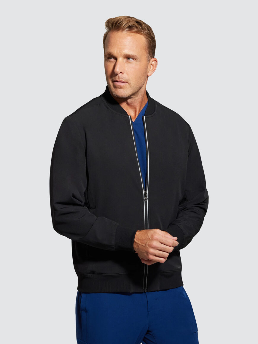 Stylish, comfortable and good for the environment, this bomber-style jacket is made from 8 recycled plastic bottles. It is lightweight, fully-lined and features a comfortable fit and reflective trim details.