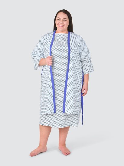 Our collection includes a variety of styles designed to meet diverse medical needs. From orthopaedic surgical gowns for healthcare professionals to patient gowns and mammography capes, each product in our range is crafted from durable, high-quality fabrics that are easy to clean and maintain. Our hospital gowns for women are designed with patient comfort and dignity in mind, offering practical features like adjustable closures, modest coverage and breathable materials.